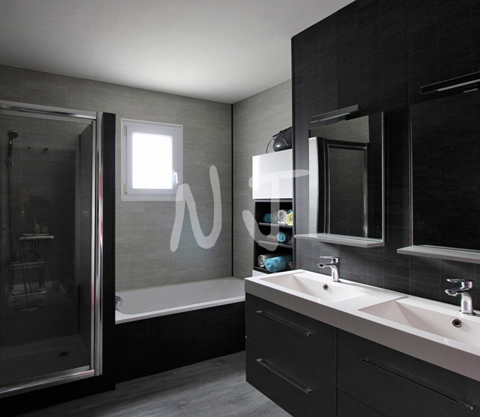 La maison est équipée aussi d'un double garage.